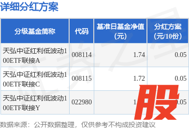 本站消息,10月18日发布《天弘中证红利低波动100交易型开放式指数证券投资基金联接基金分红公告》。本次分红为2025年度的第3次分红。公告显示,本次分红的收益分配基准日为10月10日,详细分红方案如下: